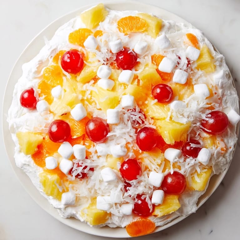 Save to Pinterest My grandmother used to bring this to every family gathering in a cut-glass bowl that caught the light just so. I never knew what made it so good until I tried making it myself one humid summer afternoon, realizing the secret was in how gently you folded everything together. The marshmallows would get soft and the coconut would soak up just enough cream to turn into something almost magical. It tastes like a simpler time, when dessert didnt need to be complicated to feel special.