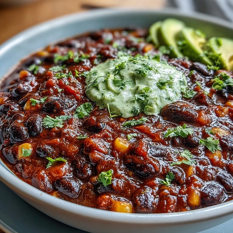 Save to Pinterest There's something about a pot of chili simmering on the stove that transforms an ordinary weeknight into something special. I discovered this black bean and corn version while standing in my kitchen on a crisp autumn afternoon, staring at a half-empty pantry and wondering what could possibly feel both comforting and exciting. The lime crema was an afterthought, honestly, a last-minute idea that came from squeezing a lime over my fingertips and thinking, why not? That small decision changed everything about the dish.
