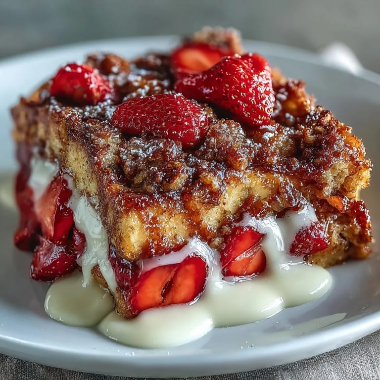 Save to Pinterest This strawberry French toast casserole is a crowd-pleasing favorite that brings a touch of decadence to any brunch table. It is easy to prepare yet feels incredibly special for celebrating with friends.