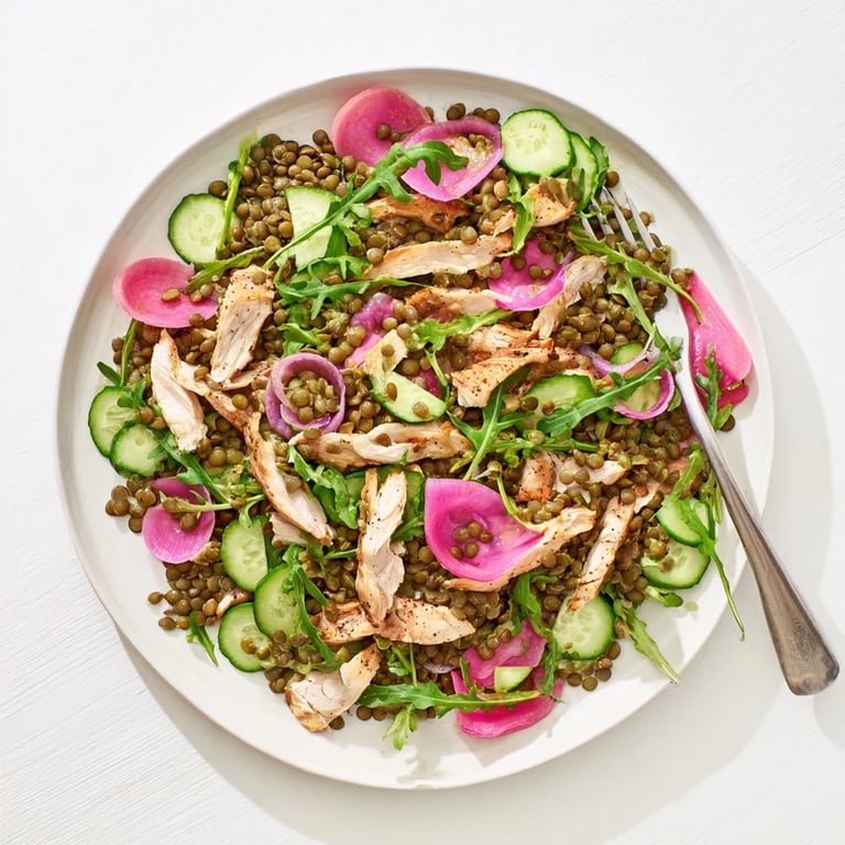 Save to Pinterest Last spring, I found myself drowning in leftover roasted chicken after hosting too many dinner parties. Something about combining those smoky leftovers with bright, crisp elements felt exactly right for the season turning warmer. I started throwing lentils into everything, and this salad became my go-to for those days when I wanted something substantial but not heavy. The first time I made it for my sister, she asked for the recipe before even finishing her bowl.