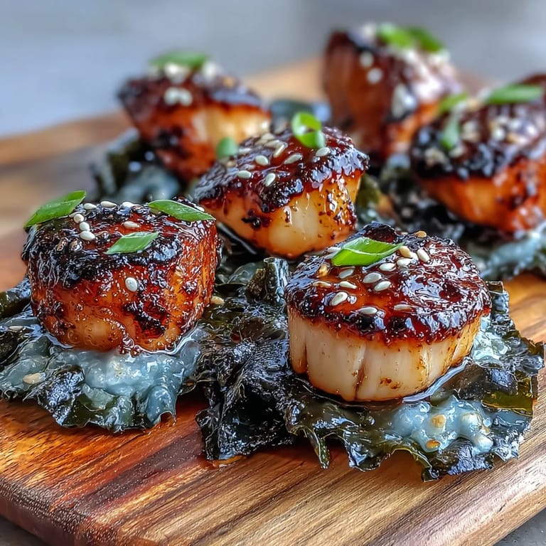 Save to Pinterest My chef friend mentioned seaweed-wrapped scallops during a casual dinner conversation, and I became immediately obsessed with the idea of crispy nori giving way to buttery, tender scallops. I'd never attempted wrapping anything that delicate before, but the simplicity of the concept kept nagging at me until I finally committed to trying it. That first attempt taught me more about timing and technique than I expected, and now it's become my go-to move when I want to impress without spending hours in the kitchen. There's something satisfying about the contrast of textures and that sharp ponzu bite that just makes everything click.