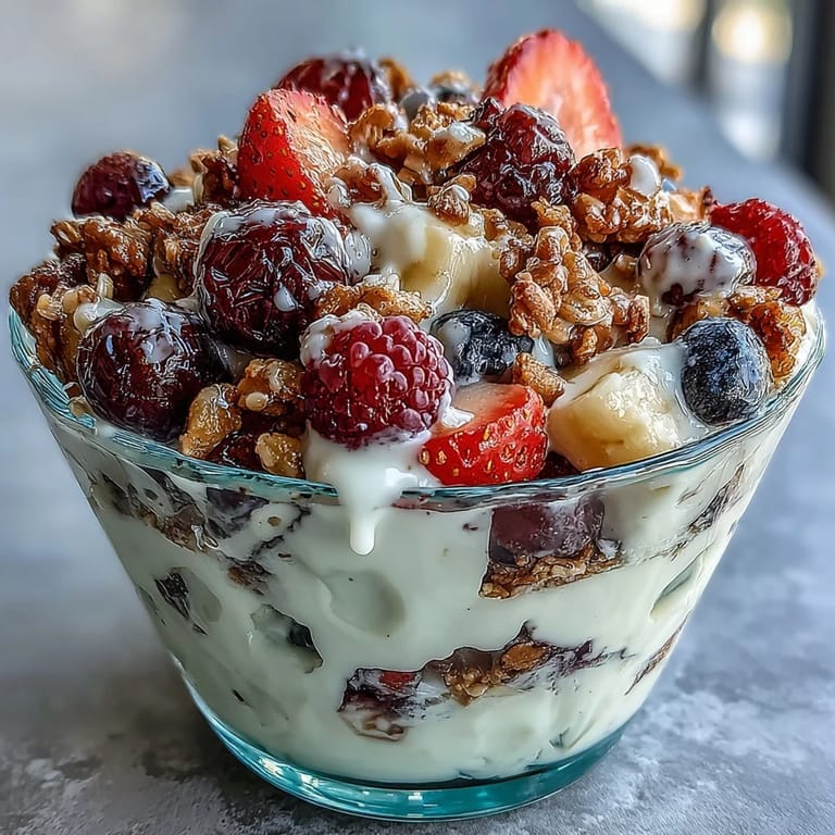 Save to Pinterest Last spring, I was volunteering at my niece's soccer tournament when the snack coordinator called in sick an hour before halftime. The coaches were panicking, the kids were getting restless, and someone had to do something fast. I raced to the grocery store, grabbed whatever colorful fruit I could find, some yogurt, and granola, and assembled these cups right there in the team tent. Watching the kids' faces light up when they realized these weren't just another bland sports snack—they actually tasted like something special—that's when I knew I had stumbled onto something worth making again and again.