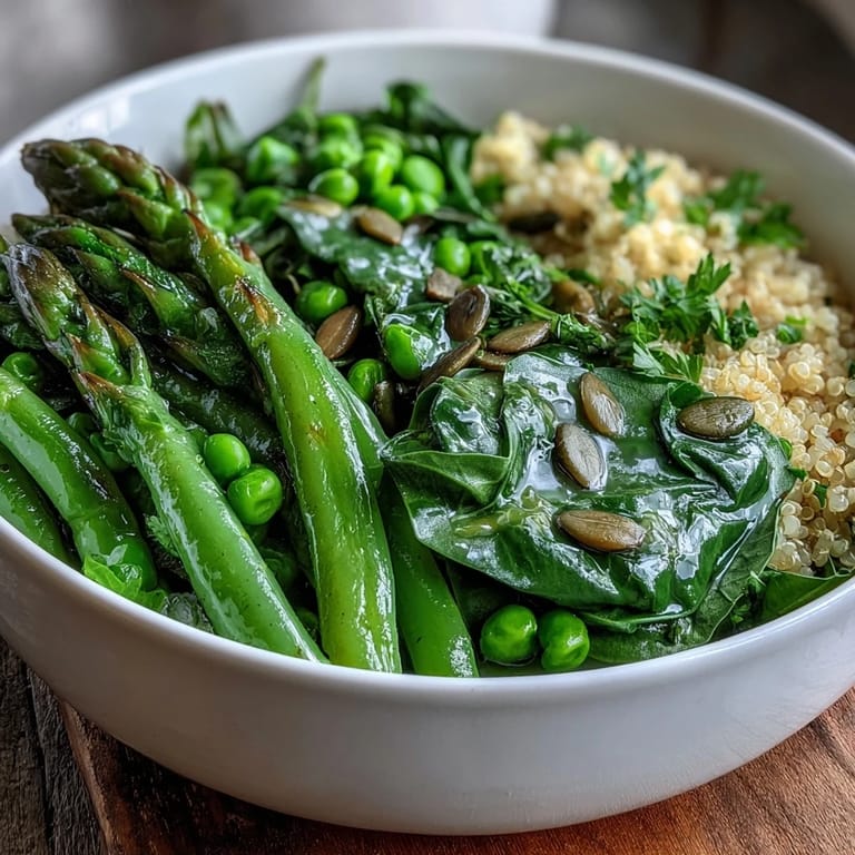 Save to Pinterest There's something about late April when the farmers market suddenly explodes with green that made me want to build a bowl around that abundance rather than fight it. I'd been standing there with a basket overflowing with asparagus, peas, and spinach, wondering how to make it feel like an actual meal instead of just a pile of vegetables, when it clicked—layer everything over something substantial like quinoa and tie it together with a bright lemon dressing that tastes like spring tastes.