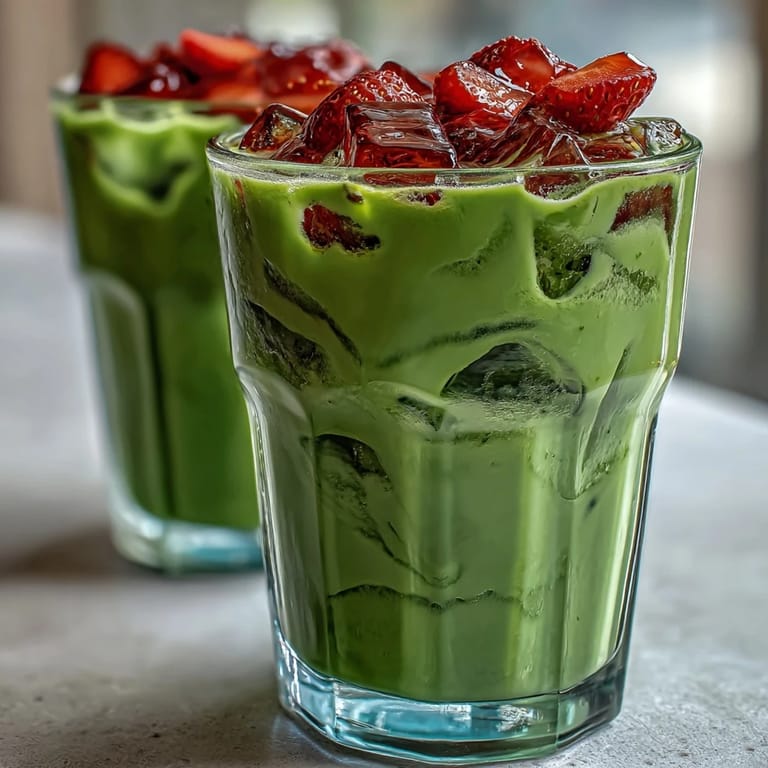 - Carefully pour matcha into each glass, letting it cascade and form your green top layer—don’t rush, this is the magic step.
