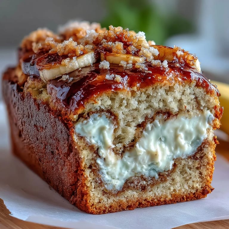 The cream cheese swirl isn't just decoration; it's the reason this loaf tastes nothing like protein-heavy banana bread usually does. When you bite through that soft crumb, you hit pockets of creamy, tangy richness that feels like you're eating something indulgent, not something designed to hit your protein macros. I've made versions without the swirl out of laziness, and they're good, but they're just good—the swirl is what makes someone ask for seconds.