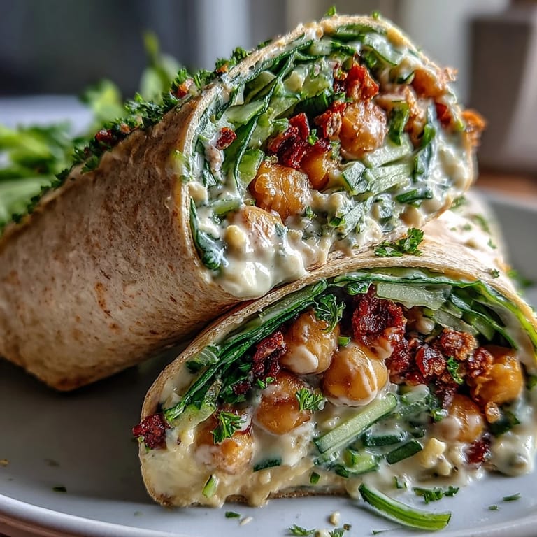 Save to Pinterest There's something deeply satisfying about a well-crafted wrap that balances textures and flavors in each bite. These Vegan Lemon Tahini Chickpea Wraps bring together the earthy creaminess of mashed chickpeas, the bright zing of lemon, and the nutty richness of tahini in a harmony that's both nourishing and delightful. Inspired by Mediterranean flavors, these wraps come together in just 15 minutes, making them perfect for busy weekday lunches or quick dinners when cooking feels like too much effort.